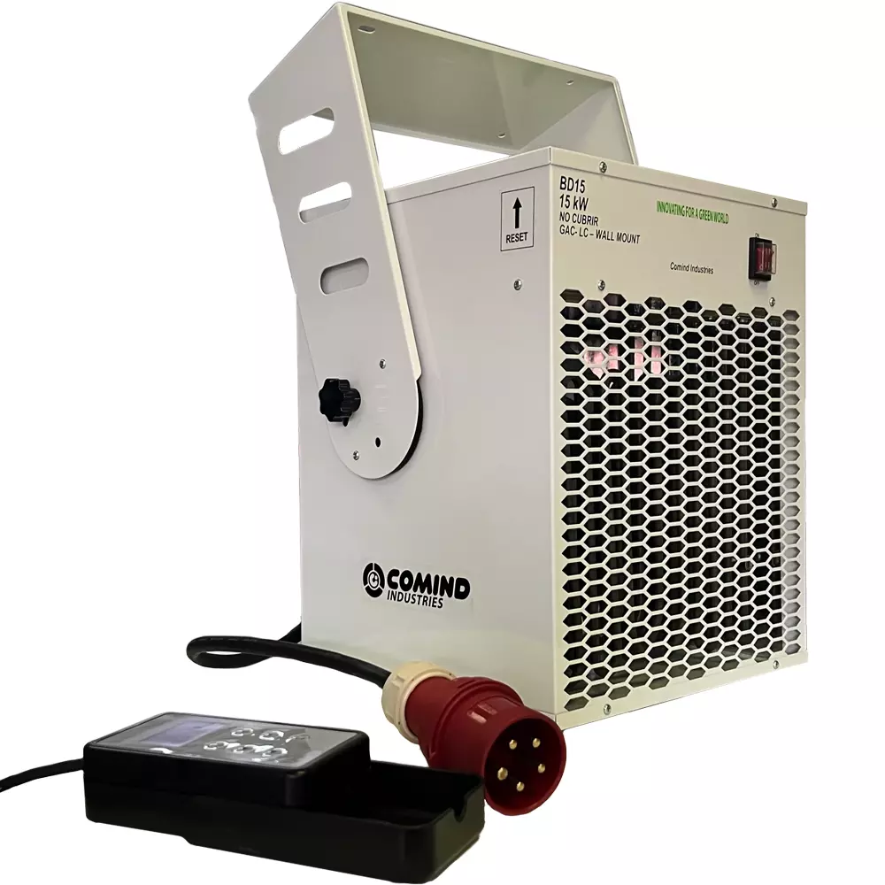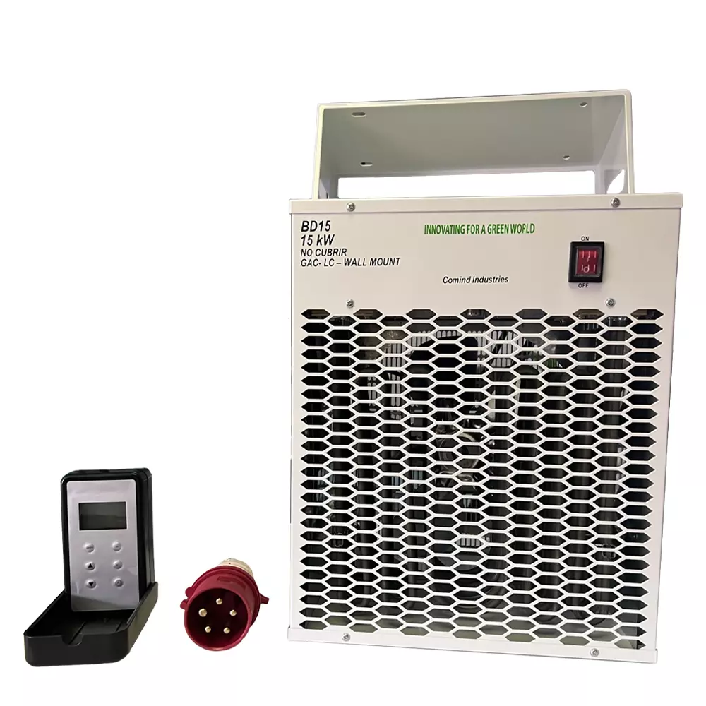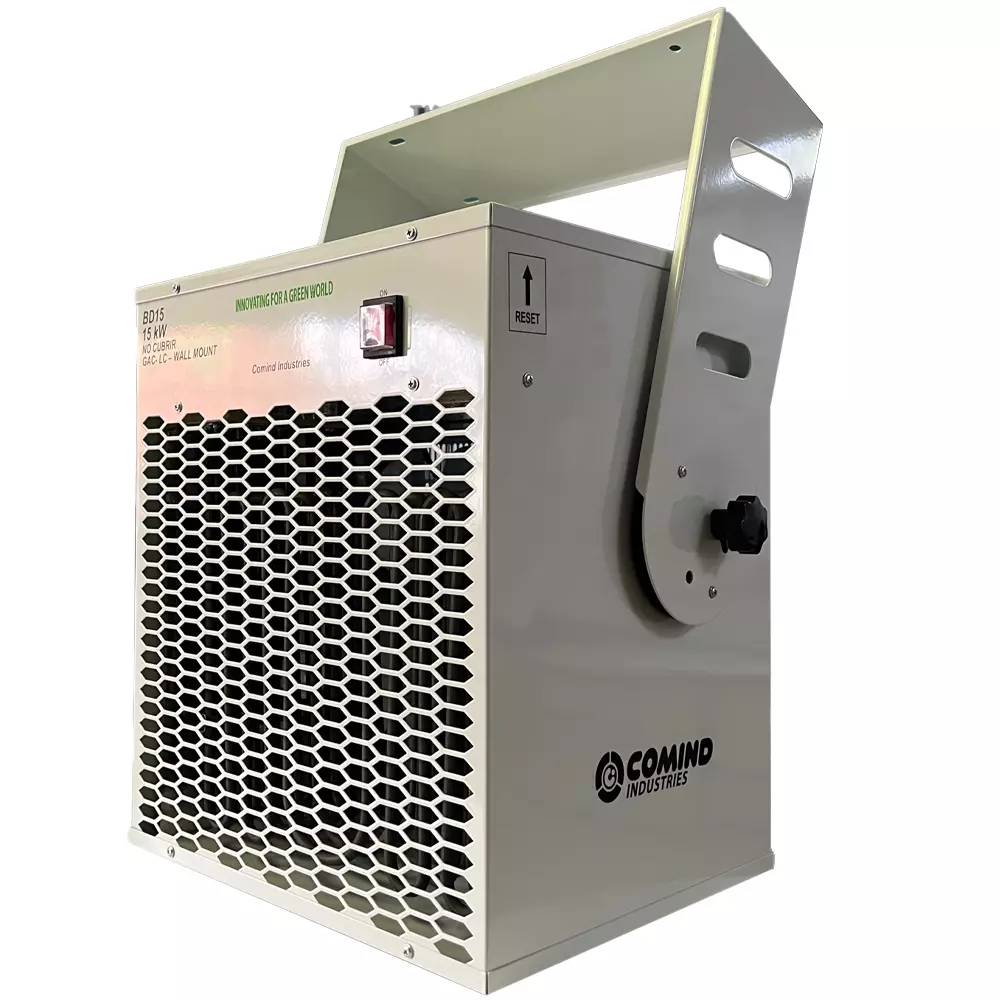 El Generador de Aire Caliente a pared GAC-WM 15KW COMIND, fue diseñado para calefaccionar diversas áreas de trabajo abarcando una superficie aproximada de 50 m2. Su diseño cuenta con un controlador de temperatura externo el cual regula la salida del aire entre 5°C a 45°C lo que permite una modifican del aire según como lo determine el cliente.